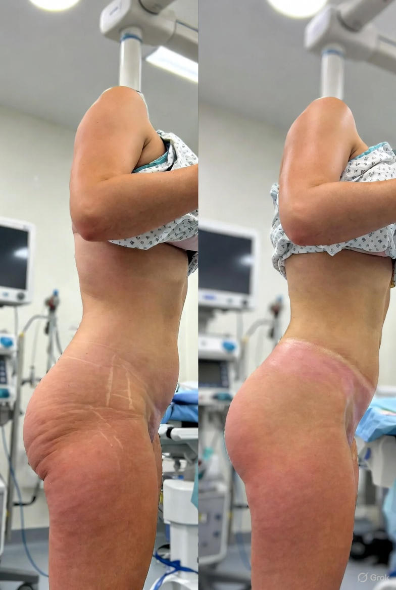 Cette intervention laisse une cicatrice en dessous du maillot ou cicatrice verticale au niveau de la partie arrière inférieure des cuisses selon l’excédent de peau.